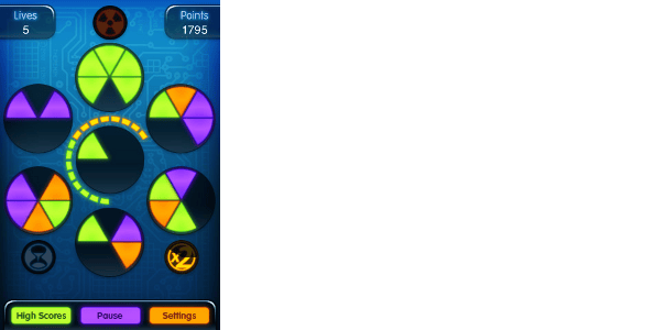 Frenzic is een puzzelspel waarbij het de bedoeling is dat je een taartvormige cirkel vult met taartpunten. De taartpunten draaien echter rond, waardoor je goed zult moeten timen om te zorgen dat de punt precies in de opening in de cirkel past. De taartpunten kunnen daarnaast drie verschillende kleuren hebben. Het is niet verplicht je hier iets van aan te trekken, want ook gevulde cirkels met verschillende kleuren leveren punten op. Je krijgt echter aanzienlijk meer punten als je het voor elkaar krijgt om een cirkel te vormen van één kleur. Frenzic kost 79 eurocent.