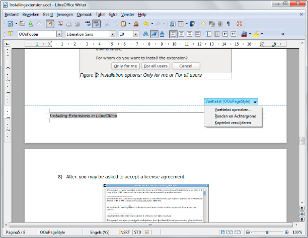 Kop- en voetteksten invoegen gaat veel eenvoudiger in LibreOffice 3.5.