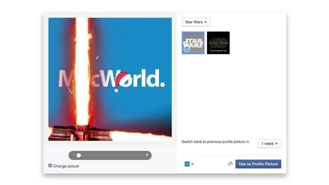 Je kunt rechtsonder instellen hoe lang je de tijdelijke profielfoto wilt behouden, waarna hij weer wordt 'hersteld'. Je kunt kiezen voor een uur, een dag, of een week. De aanpassing is dus tijdelijk, zodat je niet tot diep in 2016 nog Star Wars profielfoto's voorbij ziet komen.