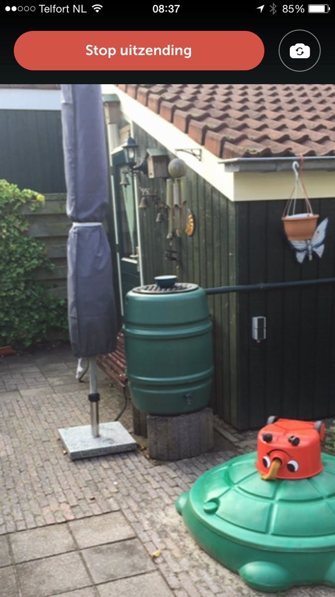 Tegenwoordig hebben smartphones aan beide kanten een camera. De camera aan de voorzijde is prima geschikt om jezelf te filmen. Handig als je tussendoor iets wilt uitleggen of een presentatie wilt geven. Je wisselt eenvoudig van camera door tweemaal op het scherm te tikken. Een andere mogelijkheid is door vanaf de bovenzijde van het scherm omlaag te vegen. Druk vervolgens op het pictogram met de camera om van beeld te wisselen. Switch tijdens de uitzending overigens niet te vaak, want dit komt erg verwarrend over voor je kijkers.