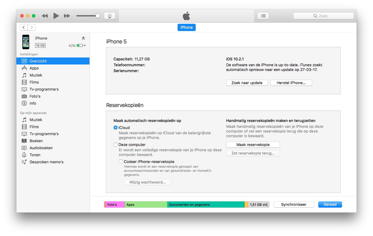 Voor je op vakantie gaat, is het handig om een reservekopie van je smartphone-gegevens te maken. Niet alleen omdat je meer risico loopt je smartphone kwijt te raken op vakantie, maar ook om extra ruimte vrij te maken zodat je meer foto’s kunt maken. Een iPhone sluit je aan op je pc of Mac en in iTunes klik je op het iPhone-icoontje bovenin. Onder Reservekopieën klik je op Maak reservekopie en je app-data, contacten en foto’s worden naar je harde schijf gekopieerd. Het is handig om een optie onder Maak automatisch reservekopieën op te kiezen. Als je toch bezig bent, kijk dan gelijk even of er een update voor je iPhone beschikbaar is door op Zoek naar update te drukken en een eventuele update uit te voeren. Je kunt automatisch reservekopieën van je Android-apparaat laten maken door bij Instellingen / Back-up en reset de schuif achter Back-up van gegevens aan te zetten. Als je je Android-smartphone op je pc aansluit, kun je ook gewoon de mapjes naar je harde schijf slepen om handmatig een reservekopie te maken.