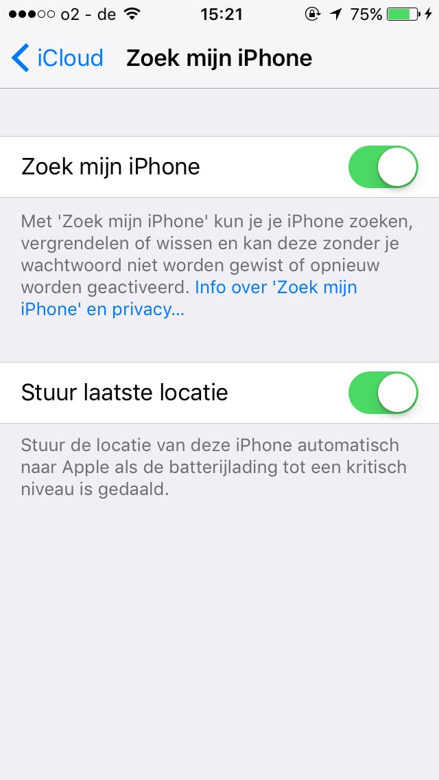 Voordat je op reis gaat, is het slim om een tracking-functie in te schakelen. Op je iPhone heet dit Zoek mijn iPhone. Dit zet je aan door bij Instellingen op iCloud te tikken en voor Zoek mijn iPhone te kiezen. Als je je iPhone kwijt bent, kun je op een andere smartphone of pc naar www.icloud.com gaan en inloggen met je aanmeldgegevens. Je ziet op een kaart waar je iPhone zich bevindt en je kunt eventueel je iPhone op afstand wissen of met een bericht vergrendelen. Android heeft een soortgelijke functie, hiervoor ga je naar Instellingen en tik je op Apparaatbeheerders. Zorg ervoor dat het vinkje achter Android Apparaatbeheer aanstaat en je kunt hier zien waar je toestel zich bevindt. Je kunt het apparaat bellen, wissen of vergrendelen.