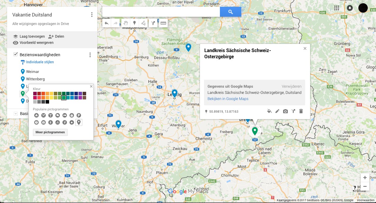 Een beetje voorpret en voorbereiding kan nooit kwaad. Zo kun je met Google Maps je eigen kaarten maken die je vervolgens in je vakantie kunt bekijken. Het is het handigste om zo’n kaart op je pc te maken. Ga hiervoor naar www.google.com/maps en log in met je Google-accountgegevens. Klik aan de linkerkant op de drie streepjes en kies voor Mijn plaatsen. Klik vervolgens op Kaarten en onderin op Kaart maken. Een nieuw venster wordt geopend, klik linksboven op Naamloze kaart om de naam te veranderen. Als je een leuke bestemming hebt gezien die je in je vakantie wilt bezoeken, geef je de naam daarvan op in het zoekvenster. Een groene pin verschijnt, en als je de locatie wilt toevoegen aan je kaart, kies je voor Toevoegen aan kaart. Door dan nog even op het potloodje te klikken, kun je nog een beschrijving of url invoeren. Je ziet dat de locaties allemaal onder de automatisch aangemaakte laag Naamloze laag worden gezet. Lagen maak je aan door op Laag toevoegen te klikken. Zo kun je bijvoorbeeld een laag toevoegen voor bezienswaardigheden, een laag voor cafés en restaurants en een laag voor overnachtingen. Je kunt bovendien een pinnetje een andere kleur geven door erop te klikken en voor het icoontje van een verfblik te kiezen. Ook kun je hier een ander pictogram voor je laag selecteren, zoals een mes en vork voor een eettent, een fotocamera voor een uitzichtpunt of een bed voor een hotel. Je kaart wordt automatisch opgeslagen en als je op je smartphone naar de Google Maps-app gaat, op de drie streepjes tikt en voor Mijn plaatsen kiest, dan vind je onder Kaarten je zojuist aangemaakte kaart.
