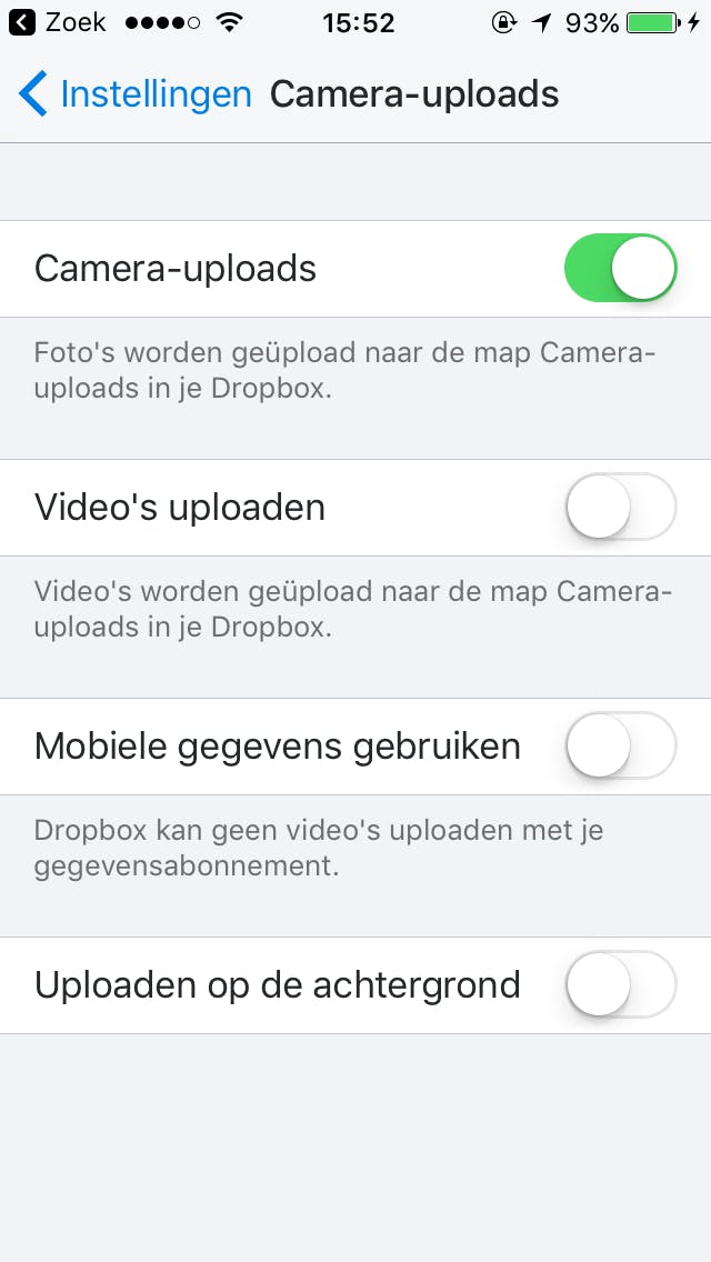 Heden ten dage is het niet meer noodzakelijk een echte fotocamera mee op vakantie te nemen. Zeker wanneer je een moderne smartphone hebt, heb je waarschijnlijk al een erg goede camera bij je. Zorg er dan wel voor dat je genoeg ruimte op je smartphone vrij hebt en dat je af en toe een kopie van je foto’s maakt zodra je een wifi-verbinding hebt, bijvoorbeeld met de functie Camera Upload van Dropbox. Meld je aan voor een gratis account en je krijgt 2 gigabyte gratis ruimte. In de app tik je op Recent en vervolgens op het tandwiel. Selecteer Camera Uploads en zet de schuif achter Camera-uploads aan. Als je nu een foto neemt met je camera, zal de foto automatisch naar je Dropbox-map worden gekopieerd als je smartphone een wifi-verbinding heeft. Als je ook video’s wilt kopiëren, zet dan ook de schuif achter Video’s uploaden aan. Google kan overigens automatisch foto’s kopiëren naar Google Foto’s en Apple kan gemaakte foto’s opslaan op iCloud.