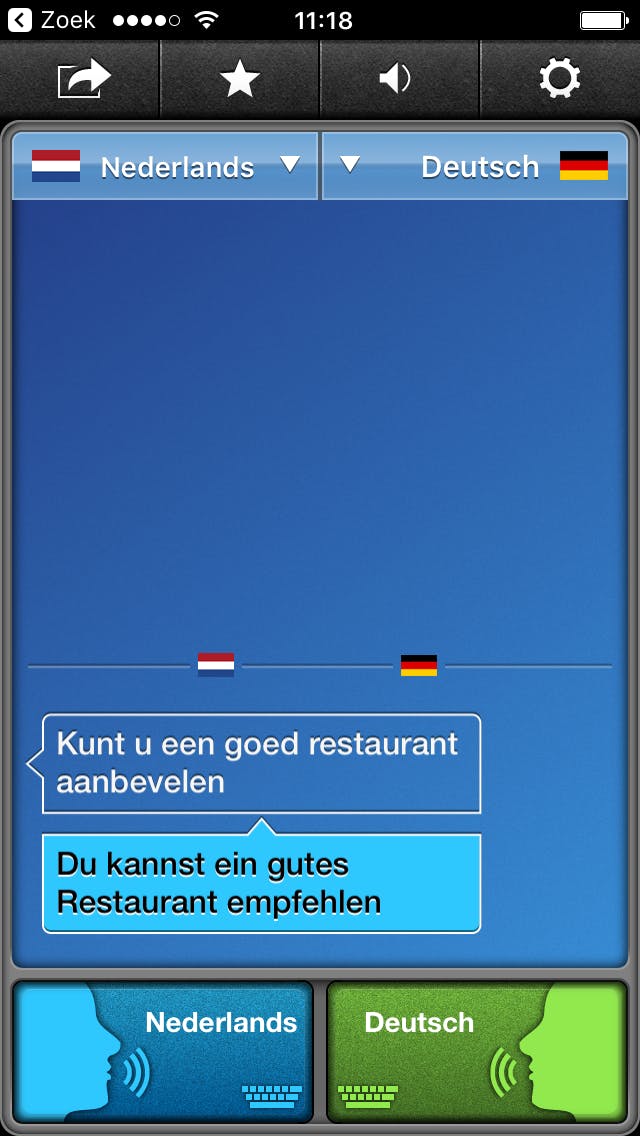 In je vakantie hoop je dat je je kunt redden met Engels, maar niet in alle landen spreken ze die wereldtaal even goed. Voor dit soort onvoorziene omstandigheden is het handig om een vertaal-app bij je te hebben. De app Google Translate is natuurlijk prima voor het vertalen van kleine zinnetjes of woordjes, maar een betere hulp is de app SayHi Translate. Helaas is deze app alleen voor iOS beschikbaar, maar voor Android is er een soortgelijke app met de naam Voice Translator Free. Installeer niet de Say Hi-app uit de Google Play Store, dit is een dating-app en heeft niets met vertalen te maken. In SayHi kies je een bron- en doeltaal door bovenin de twee talen te kiezen. Onderin worden deze talen nu ook weergegeven: de brontaal is blauw en de doeltaal is groen. Tik op de brontaal (in ons geval Nederlands) en spreek gearticuleerd je vraag uit na de piep. De vraag wordt meteen in de doeltaal vertaald en op het scherm van je iPhone weergegeven. Handig is bovendien dat de app de vraag meteen in de doeltaal uitspreekt. Je gesprekspartner kan hetzelfde doen door op de groene knop te tikken en te wachten op de piep. De vertalingen zijn niet altijd helemaal correct, maar je kunt op deze manier prima een gesprek met een voorbijganger of campingeigenaar houden.