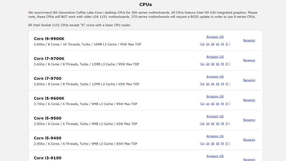 Bij andere onderdelen, zoals het werkgeheugen en de voeding, steekt het allemaal wat minder nauw. Het is hoe dan ook verstandig om te controleren of de door jou gewilde onderdelen op de lijst van ondersteunde opties staan. Zo niet, dan kun je wellicht beter iets anders uitkiezen.