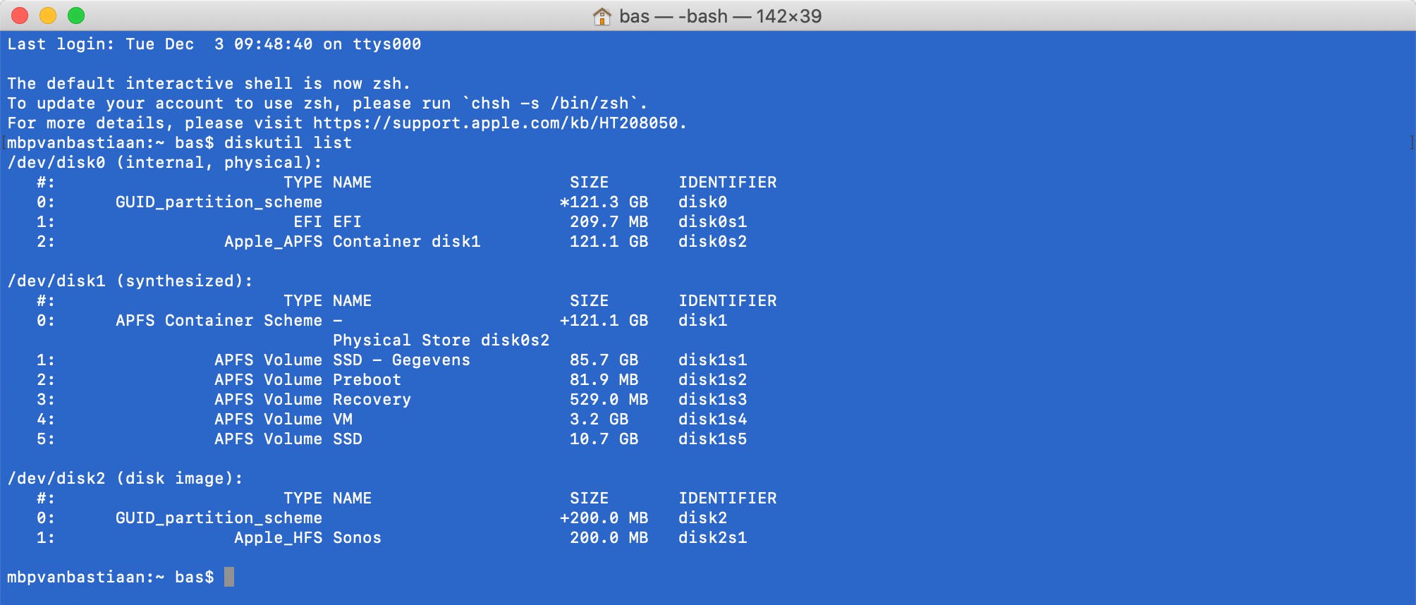 Hierna sluit je een usb-stick aan op je Mac. Open de Terminal-app en tik het commando diskutil list. Je krijgt een lijst te zien met alle aangesloten opslagmedia. Zoek in de lijst het nummer van je aangesloten usb-stick op en voer dit commando in: