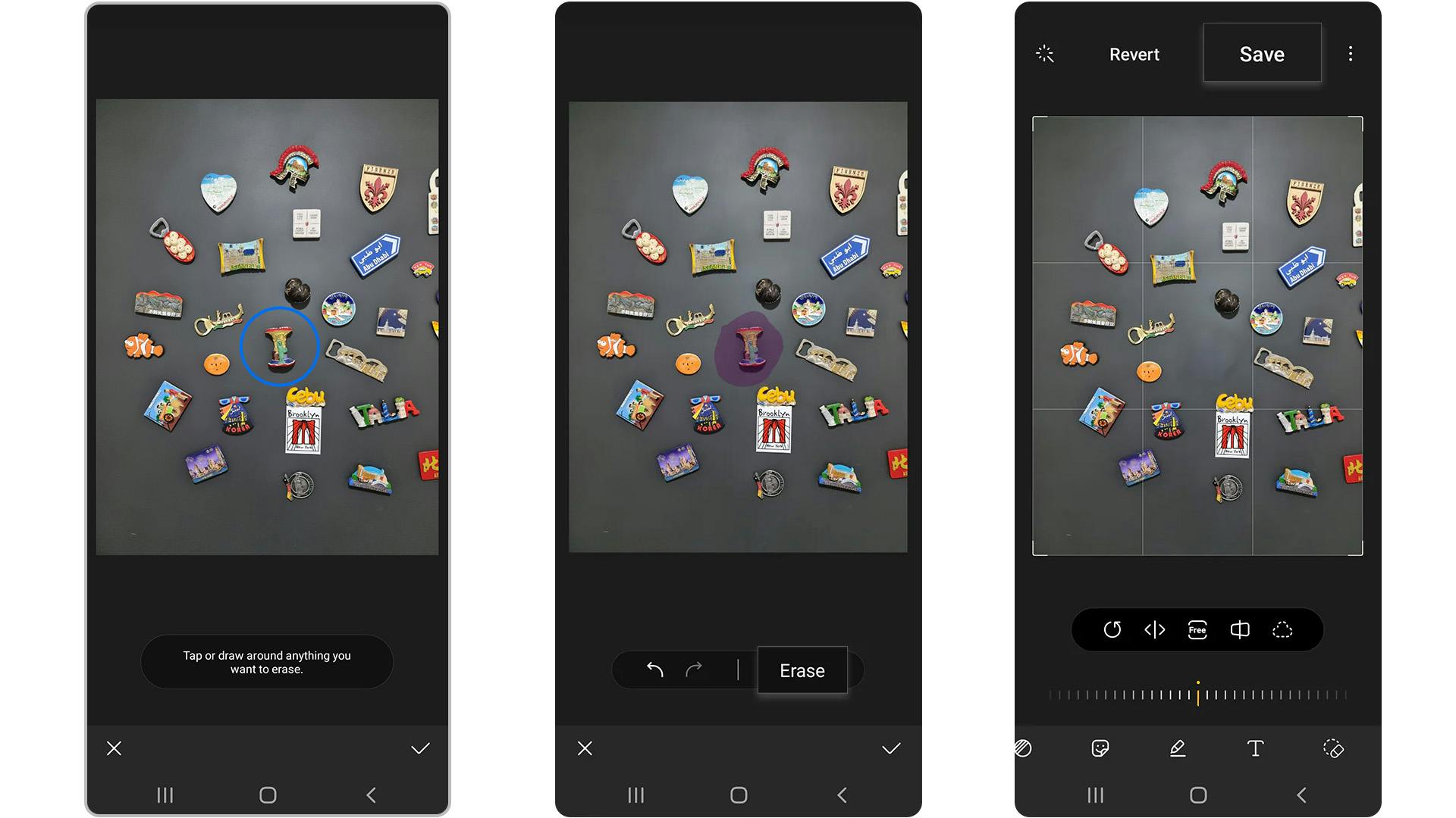 - Tik of teken rond alles wat je wilt wissen. Als je ergens op tikt, zal de app zelf een omlijning maken en dat deel uit de foto verwijderen.