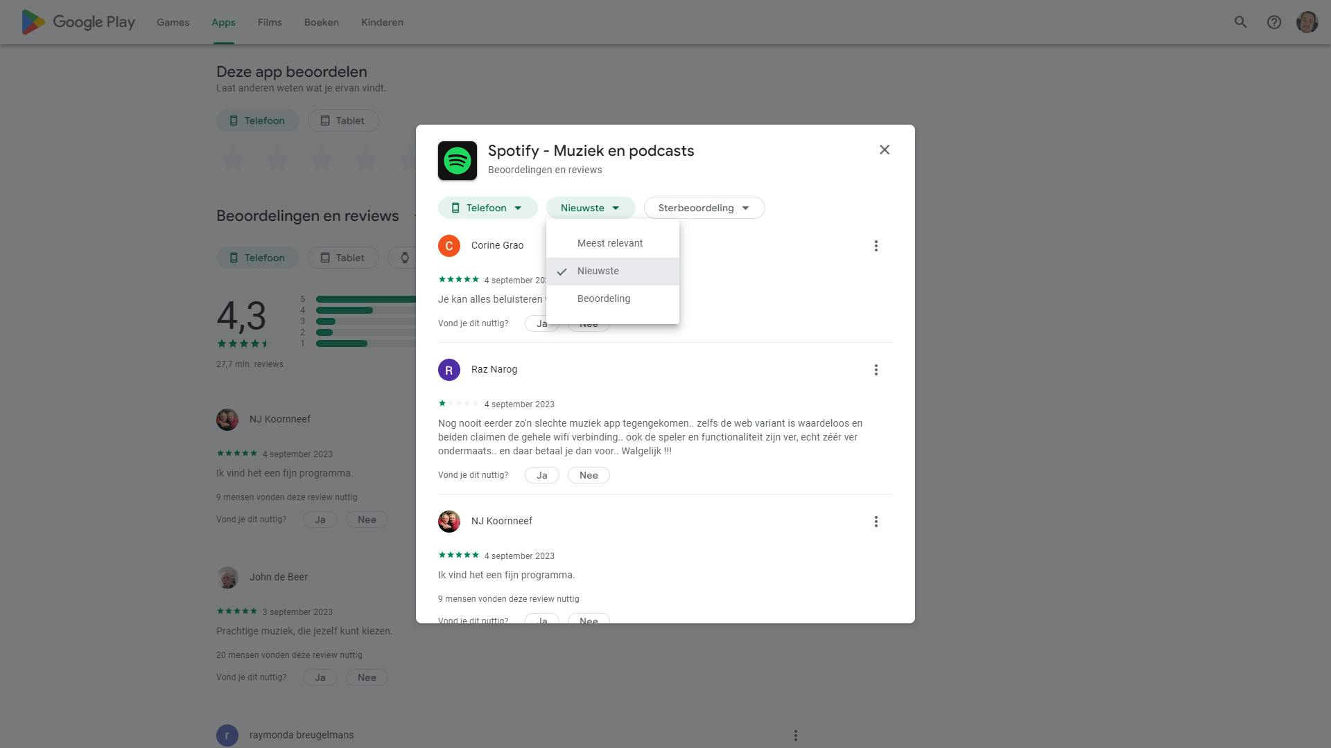 - Bekijk de reviews op de apppagina binnen Google Play.