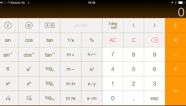 Tot slot in deze categorie een app waarvan de ontwikkelaars ontzettend dankbaar zullen zijn voor het grotere display van de iPhone 6 en zeker de 6 Plus. Want Pcalc Lite is een fantastische, gratis, wetenschappelijke rekenmachine-app, maar je moet wel heel dunne vingers hebben om alles foutloos in te kunnen typen op de iPhone 5 of 5s. Op de 6, en zéker op de 6 Plus, kun je (qua snelheid) typen alsof je een fysieke rekenmachine voor je hebt liggen omdat de knoppen veel groter zijn. Een 'gewone' rekenmachine is dus niet meer nodig.