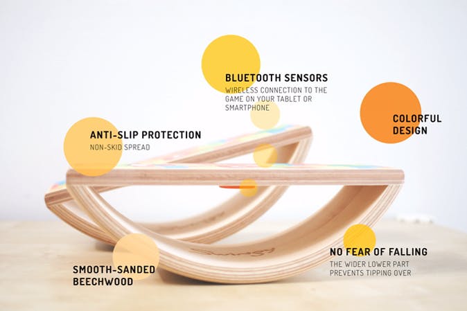 Op de houten pedalen zitten sensoren die draadloos verbinding maken met een tablet of smartphone via Bluetooth LE. Hierdoor kun je je voeten gebruiken om spelletjes te bedienen. De pedalen zijn zo afgerond dat het niet mogelijk is om om te vallen.