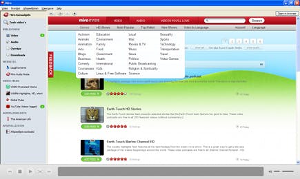 Via de ingebouwde kanaalgids ziet u welke nieuwe filmpjes beschikbaar zijn. U kunt op diverse manieren filteren. Ook is het mogelijk trefwoorden op te geven, om rechtstreeks naar films over een bepaald onderwerp te zoeken. Zodra u iets interessants voorbij ziet komen is dat met een druk op de knop binnen te halen. Het komt dan in het onderdeel Downloads van de bibliotheek te staan. Zodra een film is opgehaald, komt het in het onderdeel Video te staan, waar het vervolgens is af te spelen. Op series kunt u zich abonneren, zodra er een nieuwe aflevering beschikbaar is, wordt deze automatisch voor u opgehaald. Pas bij de installatie van Miro Video Player wel op: het programma wil erg graag dat u Miro als startpagina instelt, en vraagt dit meerdere keren tijdens de installatie.