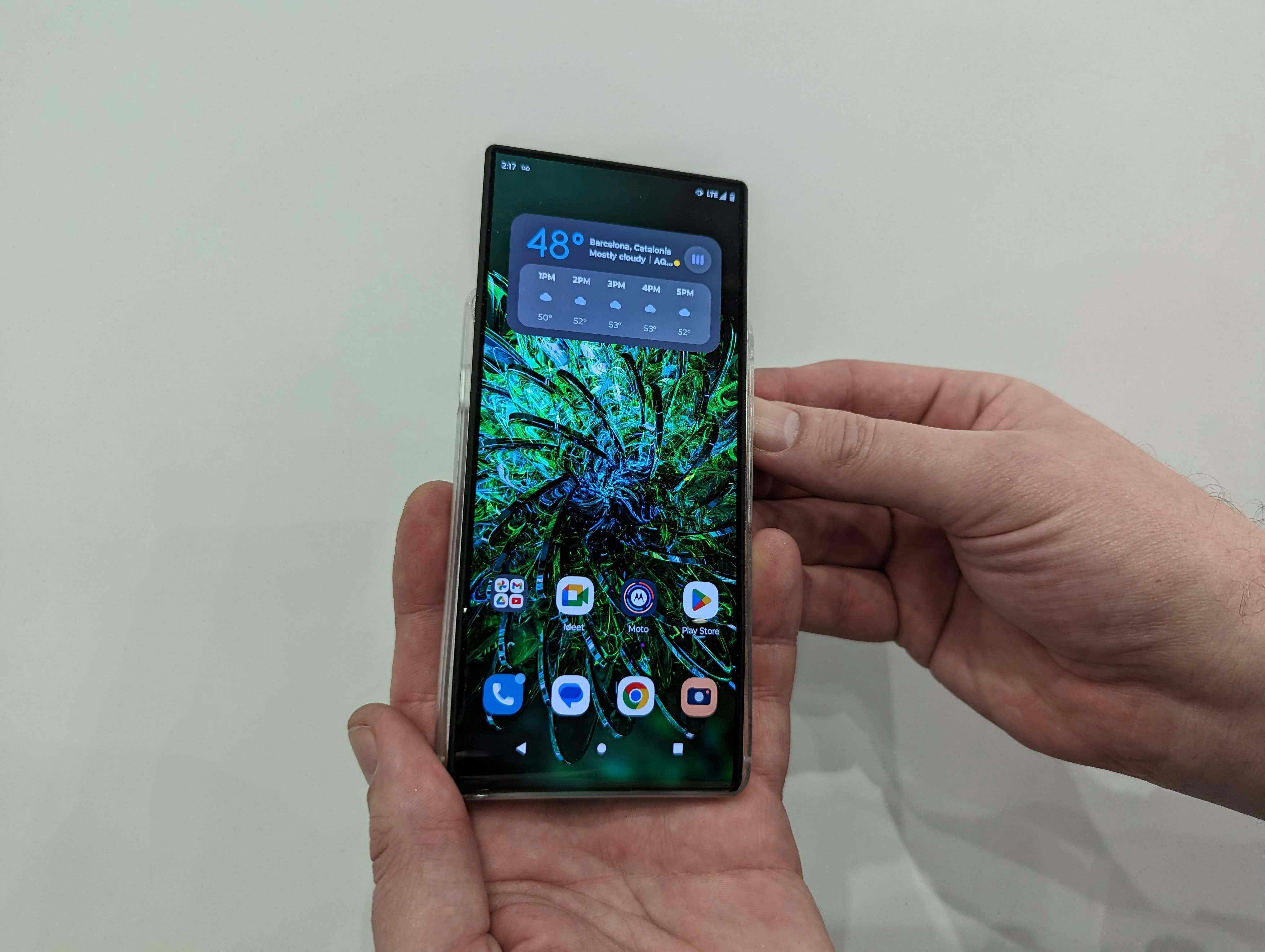 De meest vernieuwende smartphone van MWC 2023 vinden we de Motorola Rizr, helaas een conceptsmartphone waarvan het onduidelijk is of ‘ie ooit op de markt komt en zo ja in welke vorm. De Rizr heeft een compact 5 inch scherm dat met een druk op de zijknop gemotoriseerd verticaal uitschuift tot een 6,5 inch scherm. Je krijgt er dus een hoger smartphonescherm voor terug dat weer krimpt als je de telefoon in je broekzak stopt. Ook kan het scherm automatisch uitrollen, bijvoorbeeld als je een YouTube-video start. De Rizr heeft meer innovaties, die ons erg nieuwsgierig maken naar de toekomst van smartphones.