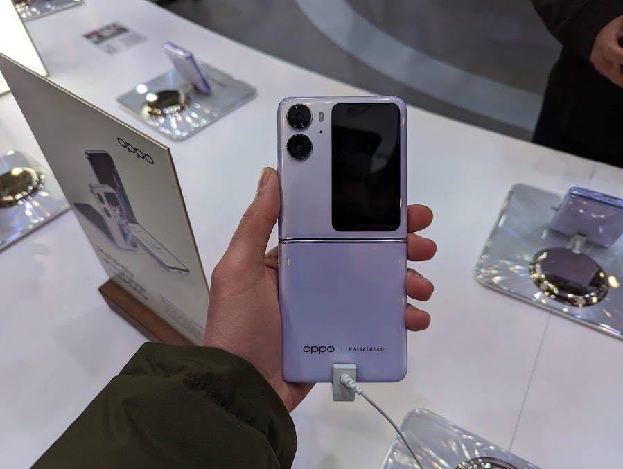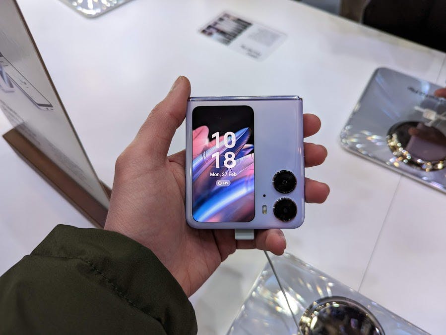 Oppo heeft de N2 Flip vlak voor MWC officieel aangekondigd en toont de klapsmartphone op de beurs voor het eerst. De N2 Flip klapt verticaal open en is zo even groot als een reguliere smartphone. Dichtgeklapt is hij de helft kleiner, maar wel dikker. Naast het 6,8 inch scherm aan de binnenkant heeft de N2 Flip ook een 3,26 inch scherm aan de buitenkant. Dit scherm – ooit het formaat van een iPhone-scherm – toont de tijd, meldingen en dient als viewfinder als je selfies maakt. De N2 Flip komt goed ontworpen over en lijkt een echte concurrent voor Samsungs Galaxy Z Flip 4. Oppo lanceert de N2 Flip binnenkort voor 1099 euro in een aantal Europese landen, maar Nederland en België zitten er – helaas – nog niet bij.