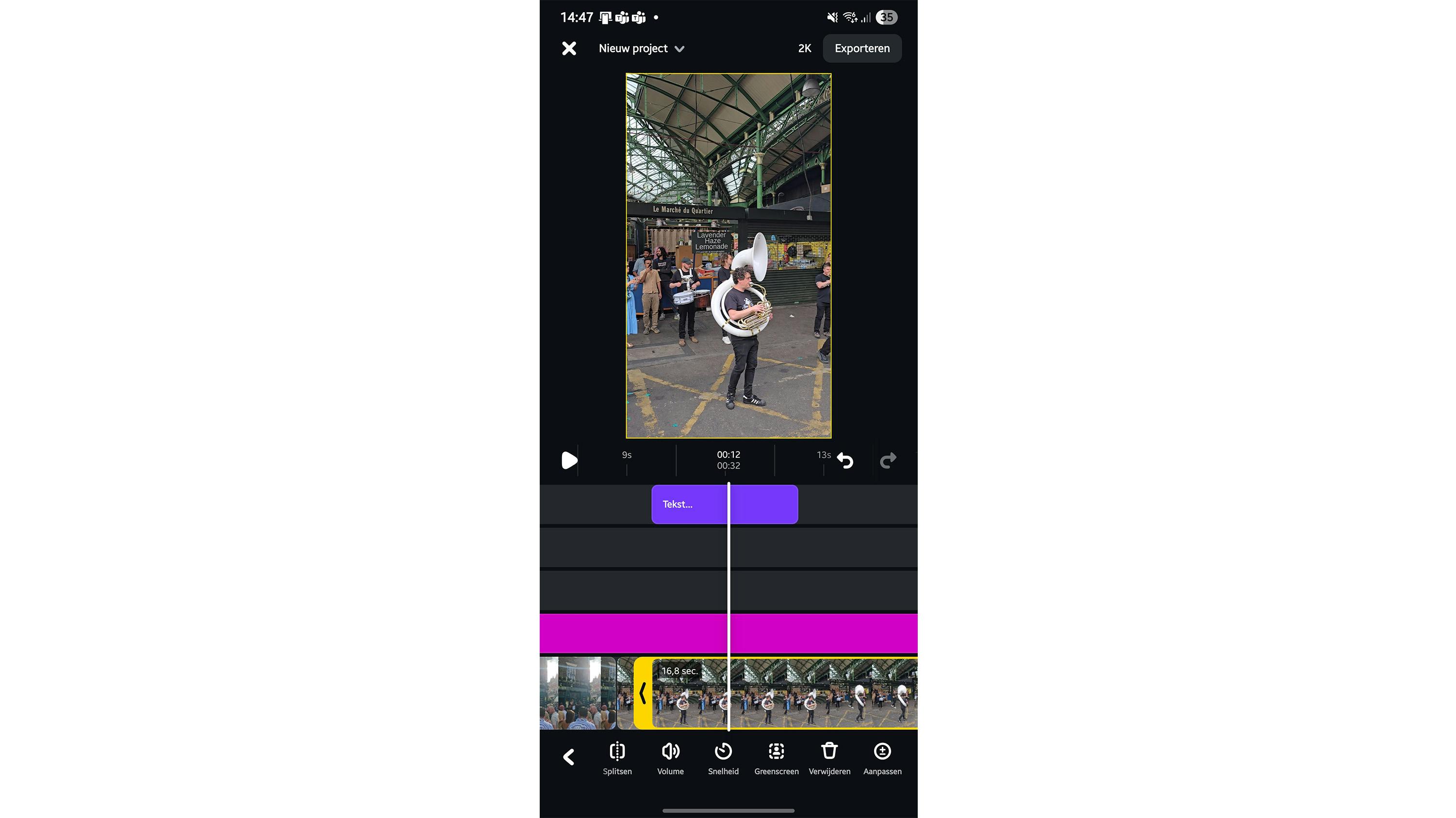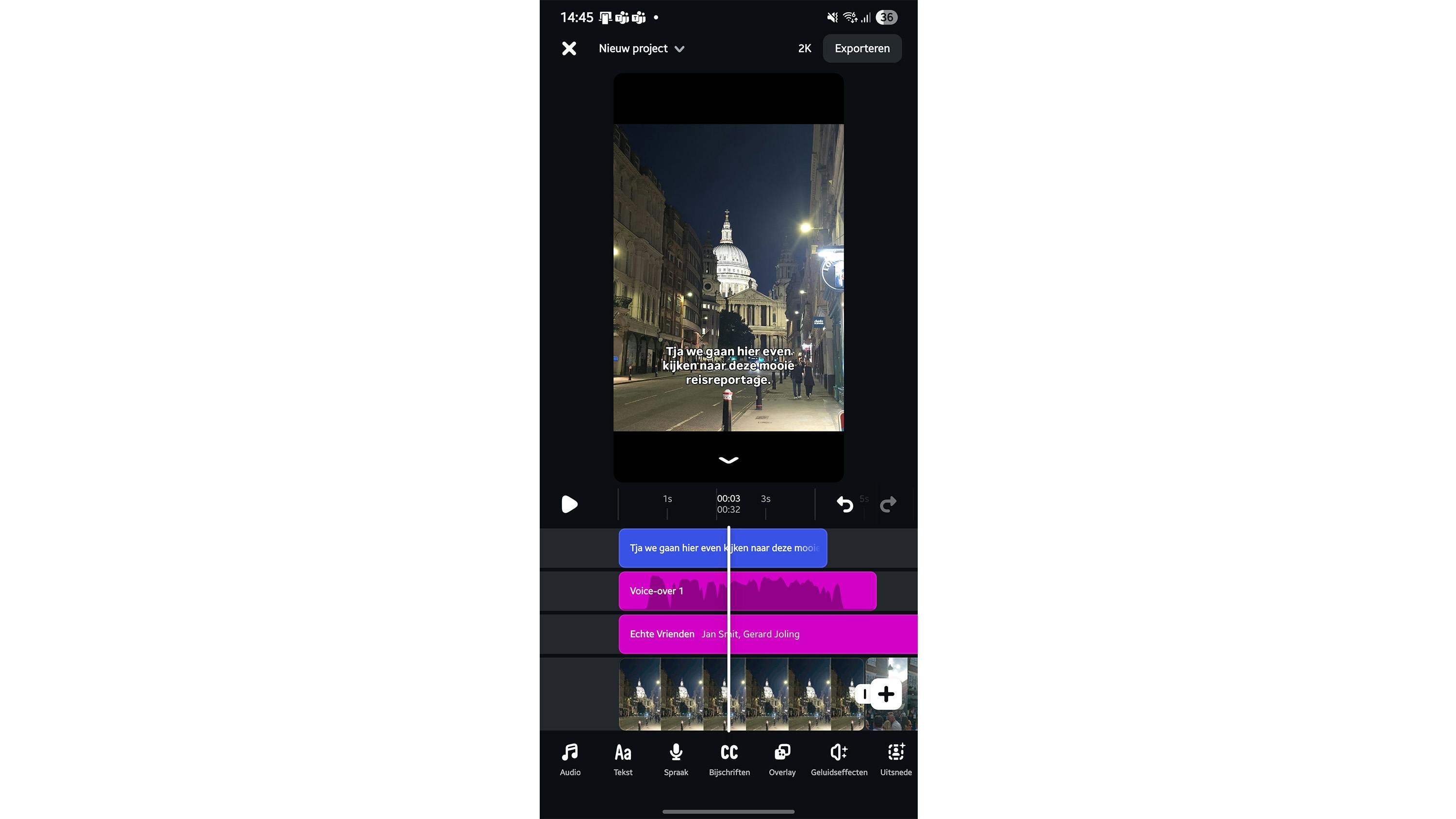 Ben je klaar met de video? Tijd om te exporteren. Bepaal eerst de kwaliteit van de export. Tik op 2K, rechtsboven in het scherm. Bepaal de resolutie (tot 4K), het aantal beelden per seconde (tot 60) en de kleur (tot HDR). Klik hierna op Exporteren. De app maakt de video. Afhankelijk van de grootte kan dit enige tijd in beslag nemen. Je kunt de video vervolgens delen op de sociale kanalen, maar dit hoeft niet: de video is ook lokaal opgeslagen op de filmrol van de telefoon.