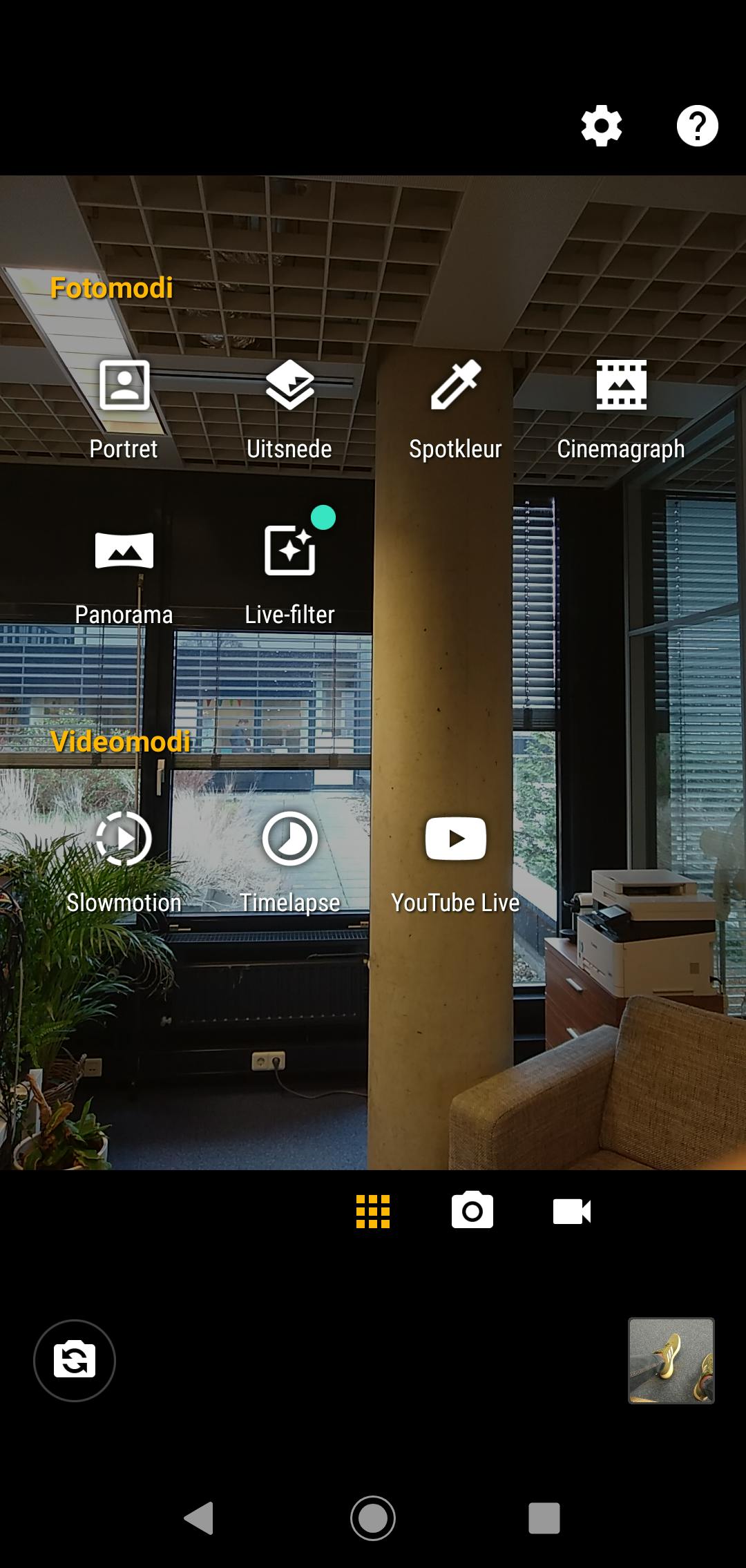 Selfies maakt de Moto G7 met de 8 megapixel frontcamera. De resultaten zijn goed genoeg, al heeft de camera het lastig in een ruimte met weinig licht. Achterop de Moto G7 zit een dubbele camera. De primaire sensor heeft een resolutie van 12 megapixel. De secundaire 5 megapixel sensor wordt ingezet als je een bokeh-foto schiet. Hierbij vervaagt de lens de achtergrond, zodat de persoon of het object op de voorgrond beter tot zijn recht komt. Deze functie werkt aardig, maar lang niet zo goed als op duurdere smartphones als de iPhone XS. Jammer maar begrijpelijk. Minder logisch is Motorola’s ‘Spotkleur’-camerafunctie. Tik in de camera-app een object of persoon aan en die kleur (bijvoorbeeld een rode trui) blijft zichtbaar op de zwart-wit-foto. Een geinig, maar overigens niet nieuw, idee dat in de praktijk bijna altijd matig tot slecht werkt.