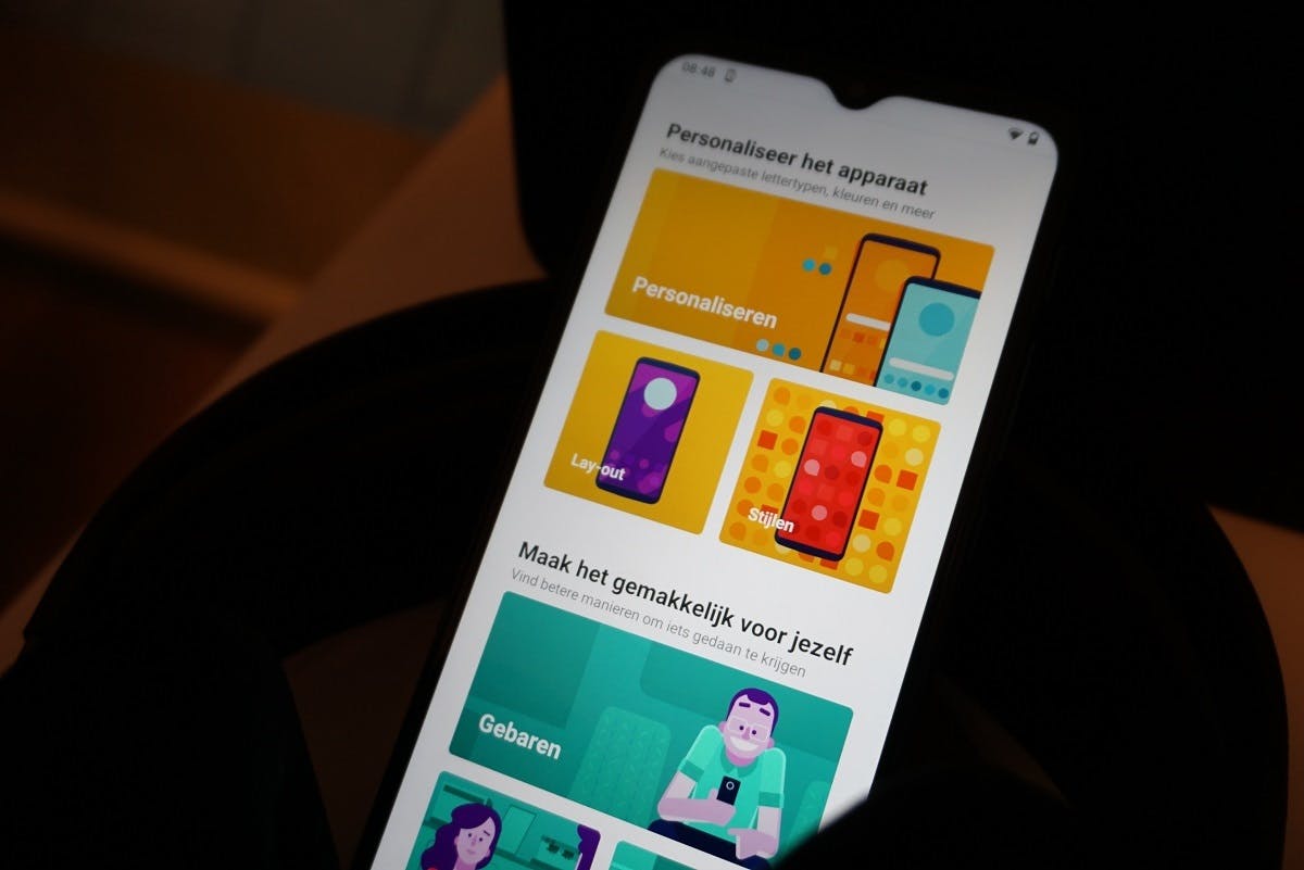 Motorola levert de Moto G9 Play met Android 10 en past de software nauwelijks aan. Dat vind ik fijn omdat stock-Android lekker werkt en ik geen behoefte heb aan visuele veranderingen of extra apps. Fijn is dat je het toestel kunt personaliseren qua kleuren, gebaren en snelle acties.
