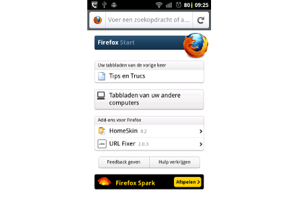 Firefox 4 is de eerste editie van de opensource-browser waarvan tegelijk met de Windows-versie ook een versie voor Android beschikbaar is gesteld. Als u een Android-telefoon hebt, dan kunt u dezelfde browser op uw telefoon gebruiken als op uw computer, en dat biedt heel wat voordelen. In tegenstelling tot de standaardbrowser van Android kan Firefox bijvoorbeeld worden uitgebreid via add-ons, net zoals zijn broertje op de desktop. Handige add-ons zoals Adblock Plus of Readability kunt u voortaan dus ook op uw mobiele telefoon gebruiken. Uiteraard ziet de interface van Firefox voor Android er anders uit dan die van Firefox op de computer, omdat de ontwikkelaars rekening hebben gehouden met het kleine scherm. De mobiele browserversie biedt echter heel wat van dezelfde features. Een voorbeeld daarvan dat het vermelden zeker waard is, is Sync. Als u dit instelt, wordt de browserervaring op uw mobieltje volledig gesynchroniseerd met die op uw desktopcomputer. Zo hebt u op uw Android-toestel altijd toegang tot bijvoorbeeld de surfgeschiedenis en bladwijzers van Firefox op uw computer - en andersom. Dat gaat zelf zó ver, dat u onderweg op uw mobiele telefoon websites kunt oproepen die u in tabbladen op uw computer had openstaan toen u uw huis verliet. In de volgende tip leggen we meer uit over de Sync-functie.