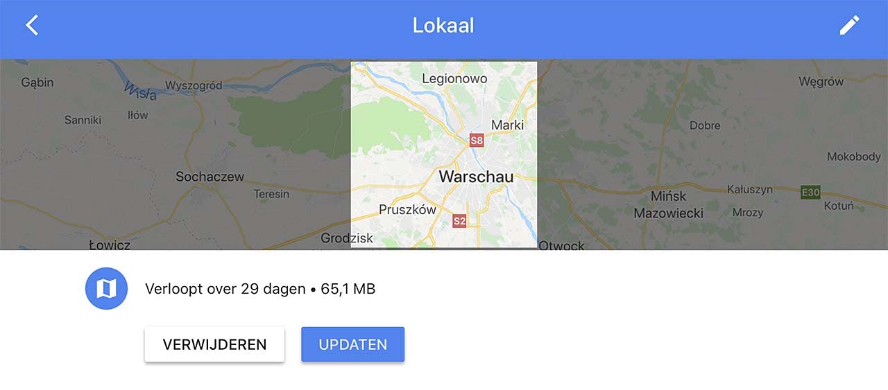 En daarmee belanden we op een volgend sterk punt van de app Google Maps: je kunt er prima mee navigeren. En dan niet alleen in de auto, maar ook voor fietsen, wandelen en zelfs OV. Daarbij is het goed om in het achterhoofd te houden dat Google Maps desgewenst ook offline kan werken. Dat scheelt dataverkeer en bijbehorende kosten, maar ook dat je ergens in de wildwoeste natuur zonder verbinding en dus kaart komt te zitten. Om een kaart(deel) voor je vertrek te downloaden tik je op de knop met de drie streepjes linksboven in beeld. Tik vervolgens in het geopende menu op Offline kaarten. Helaas moet je tegenwoordig een Google-account hebben om deze optie te kunnen gebruiken. Kortom: even inloggen met je Google accountgegevens. Let daarbij op de waarschuwing die - in ieder geval in iOS - verschijnt: je gegevens tussen app en site worden na deze actie gedeeld. Tik op Doorgaan en dan ofwel op Lokaal ofwel op Aangepaste kaart. In het eerste geval wordt een kaartdeel van jouw omgeving binnengehaald, in het laatste geval kies je zelf een kaartdeel. Een kaart blijft 29 dagen geldig, daarna moet de zaak van een update voorzien worden. dat gebeurt overigens in principe automatisch, via de instellingen is dat gedrag naar wens aanpasbaar. heb je de kaart niet meer nodig, tik dan op Verwijderen in het lijstje met gedownloade kaarten. Heb je geen zin in een steeds meeglurend Google, tik dan linksonder in beeld op je account en kies in het geopende paneel voor de optie Maps gebruiken zonder account. Vanaf dat moment ben je ook je offline kaarten en het beheer daarvan kwijt.