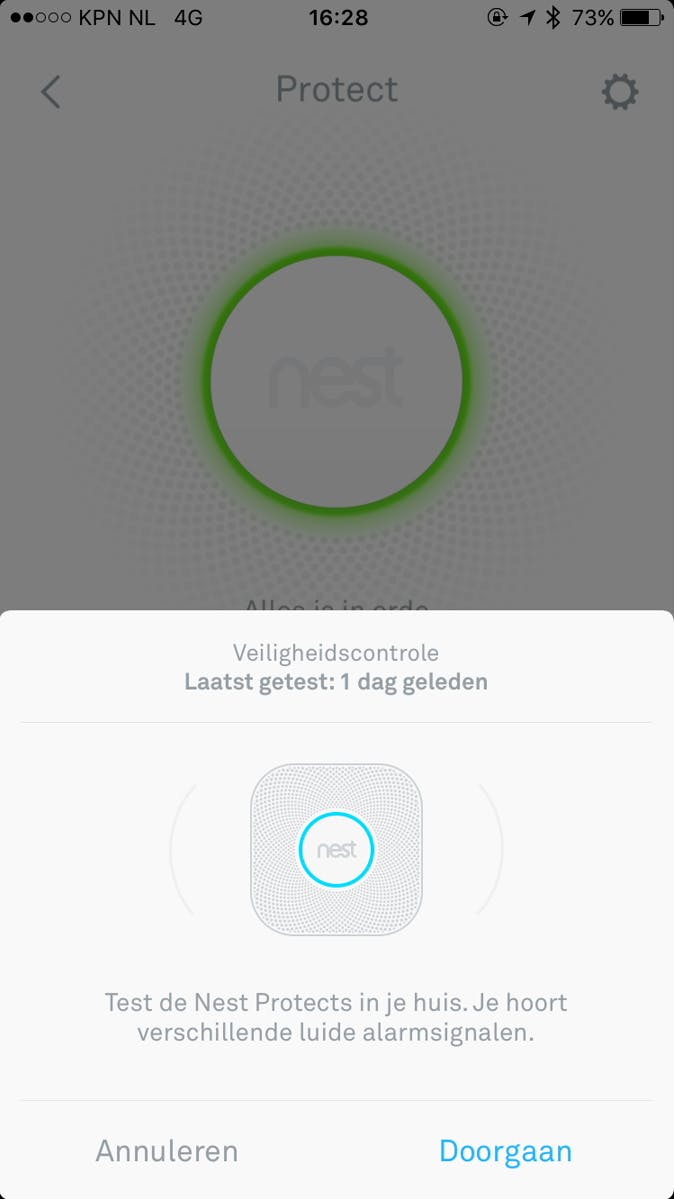 De nieuwe Nest Protect kun je zoals ik verwacht via de app checken. Een onverwachte bonus is dat ook eerste generatie Nest Protect-rookmelders vervolgens automatisch mee gecontroleerd worden. Bij de nieuwe Nest Protect is zelf testen zelfs niet nodig, dankzij een ingebouwde microfoon kan de rookmelder zichzelf op een zelf in te stellen tijdslot testen. Net als bij de eerste generatie worden de sensoren, stroomtoevoer en wifi-verbinding ook automatisch getest.