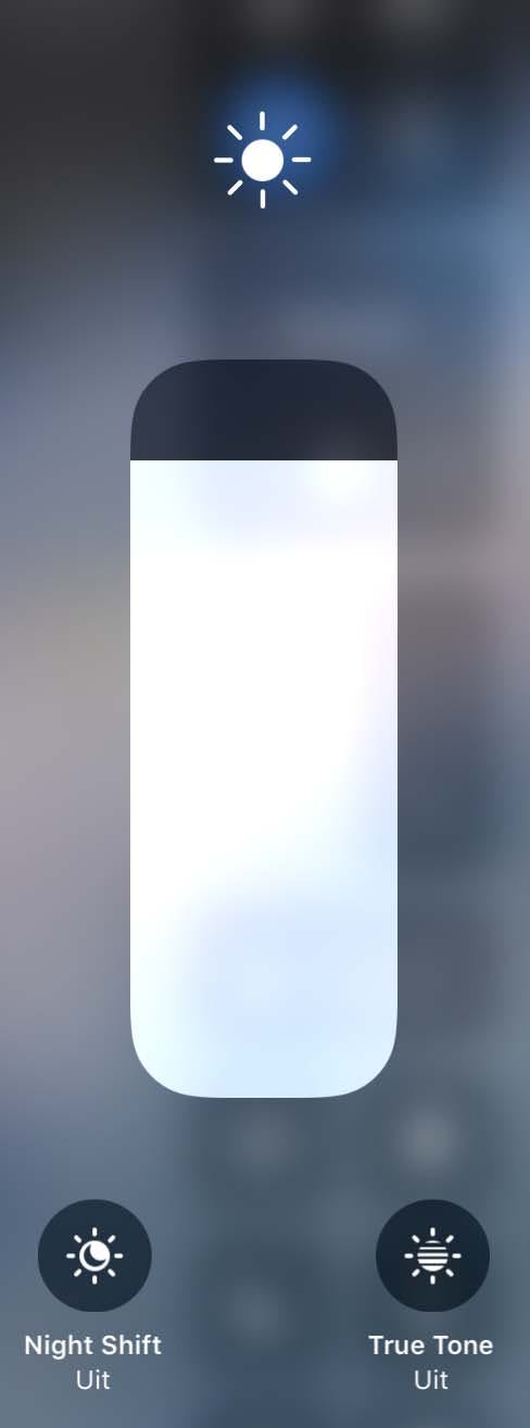 Een andere truc die je tegenwoordig in iOS aantreft is True Tone. Zoals gezegd bedoeld om de kleurtint van het scherm aan het omgevingslicht aan te passen. Op zich werkt dit aardig, maar het gaat niet altijd helemaal perfect. Bij daglicht leidt het bovendien al snel - in vergelijking met de real life-kleuren - tot een wat warme tint. Hou je daarvan: prima. Zo niet, dan is uitschakelen snel geregeld. Veeg weer omhoog voor het control center en houd je vinger op de schuifregelaar voor de schermhelderheid (of druk wat harder). Tik dan rechtsonder op de True Tone-knop om deze optie aan of uit te zetten. Je kunt ook gebruik maken van de app instellingen; daar vind je de True Tone-optie onder Beeldscherm en helderheid.