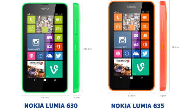 De Nokia Lumia 630 is de goedkoopste van de drie nieuwe toestellen. Het toestel komt in twee uitvoeringen, waarbij de ene een enkele simkaart leest en de andere er twee tegelijk kan lezen. De smartphone biedt tot 3G internet aan. De Lumia 635 werkt ook met 4G internet en komt in vijf verschillende kleuren uit.