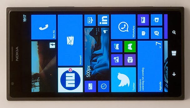 Nokia heeft het 6 inch-beeldscherm voorzien van een full-hd-resolutie. Dit is overigens ook wel gewenst met een scherm van dit formaat, aangezien je met een lagere resolutie al snel een onscherp beeld kunt krijgen. De voordelen van een groter scherm worden voornamelijk op het startscherm benut. Hier heb je een extra kolom voor je tegels. Verder zijn alle apps hetzelfde als op een kleiner scherm, behalve dat het lettertype een flink stuk groter is. Handig voor jezelf, maar je omgeving kan ook gelijk meekijken.