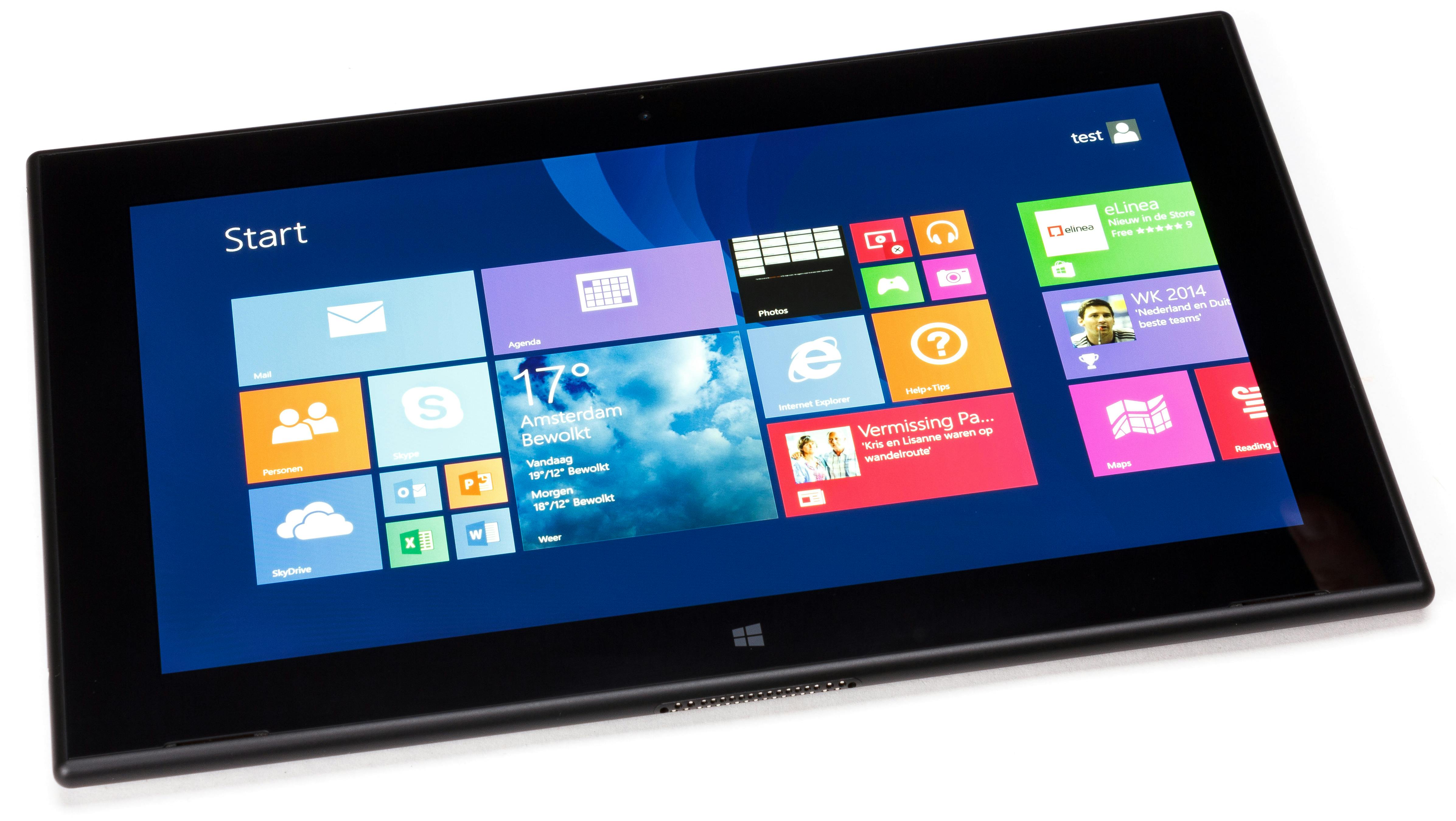Dat ziet er uit en werkt net zo als gewoon Windows 8.1, maar is gemaakt voor de arm-techniek zoals die in veel tablets wordt gebruikt. Belangrijk voordeel van deze versie is dat Microsoft Office inclusief Outlook standaard is ingebouwd. Daar hoeft u niet voor te betalen en kunt u direct mee aan de slag, nadeel is dat andere desktopsoftware niet op deze tablet geïnstalleerd kan worden.