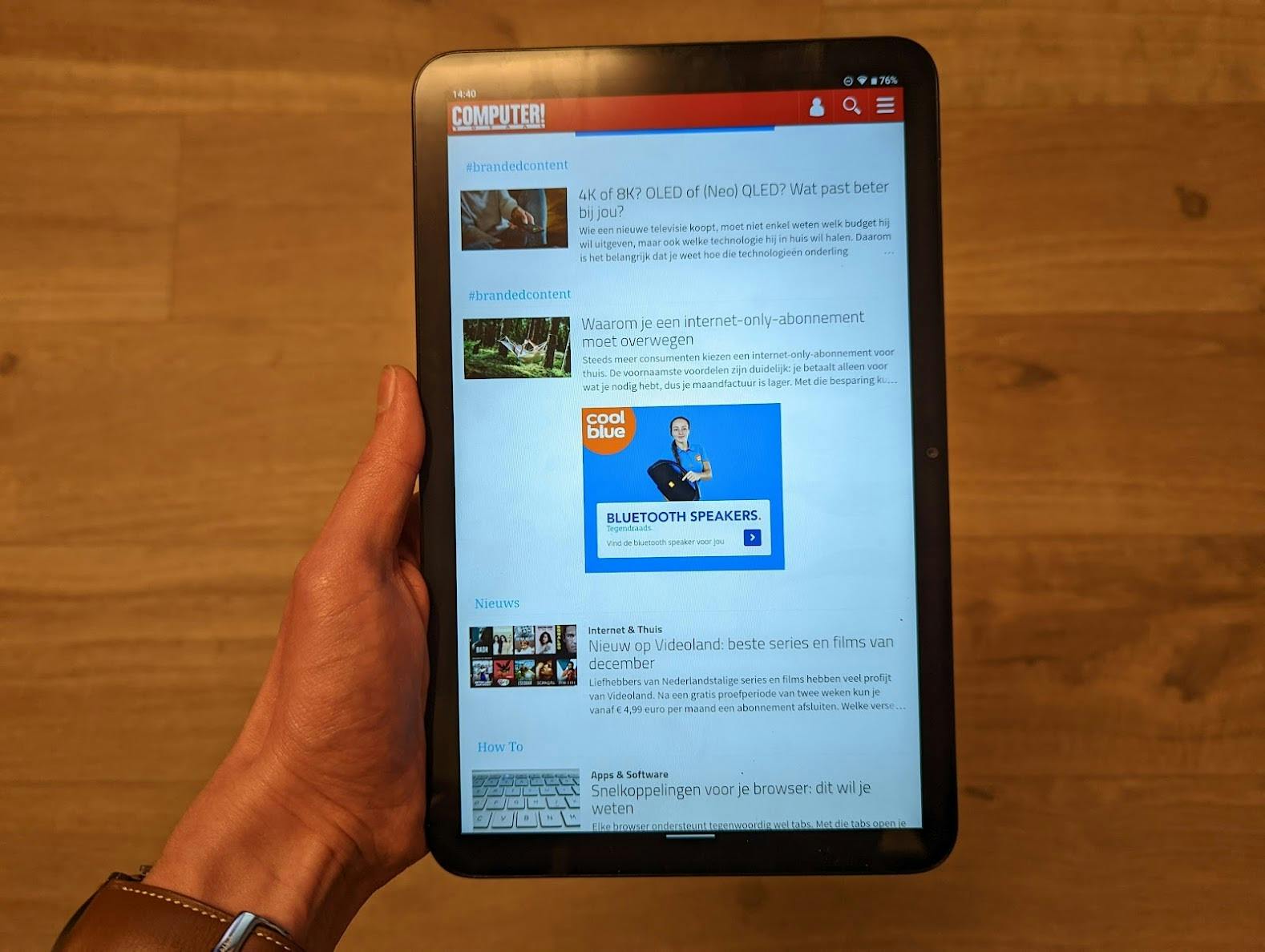 Hoewel de software prima werkt, valt het mij op dat Android 11 niet slim omgaat met het grote scherm van een tablet. De software-ervaring lijkt geleend van de smartphone, wat tot veel loze ruimte leidt. Tijdens de testperiode maakte Google gelukkig bekend dat de nieuwste Android-versie voor tablets (Android 12L) beter gebruik gaat maken van het grotere scherm. De software toont meerdere kolommen en laat je prettiger twee apps naast elkaar gebruiken. Android 12L moet begin 2022 uitkomen en was dus nog niet te testen.