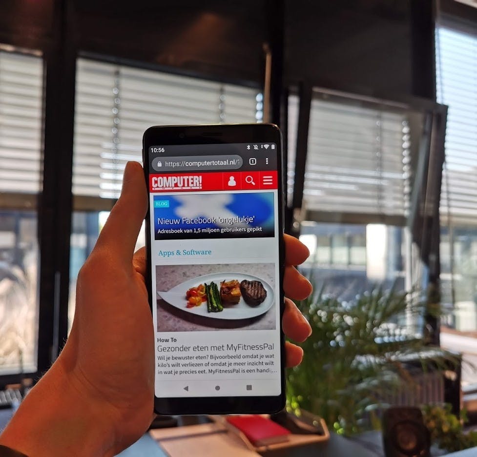De metalen behuizing voelt degelijk aan, al is het toestel met 193 gram wel aan de zware kant. Dit komt ook deels door de bovengemiddeld grote accu van 3800 mAh. Een voordeel van metaal is dat het geen vingerafdrukken aantrekt. Anderzijds kan je de accu niet draadloos opladen, een feature die je wel vindt op duurdere toestellen met een glazen achterkant. De vingerafdrukscanner achterop zit naar mijn mening net iets te hoog. Voor wie kleinere handen heeft, kan dit een probleem zijn. De scanner is wel snel en accuraat. Vervelend is dat de smartphone door zijn afgeronde achterkant niet plat op zijn rug ligt. Hij wiebelt als je het scherm aanraakt.
