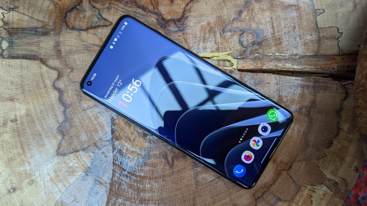 Die eerste indruk is gelukkig absoluut meteen een positieve. De OnePlus 10 Pro voelt wat minder log en zwaar dan de OnePlus 9 Pro van vorig jaar. Het ontwerp is om de vingers bij af te likken. Vooral de glazen achterzijde oogt uniek, met een groot plateau van drie lenzen en een circkelvormige ledflitser dat vanuit de metalen zijkant doorgetrokken over de achterkant. Hoewel glas natuurlijk kwetsbaar is, smeekt de achterzijde niet om een hoesje omdat het matte glas niet gevoelig is voor vingerafdrukken.