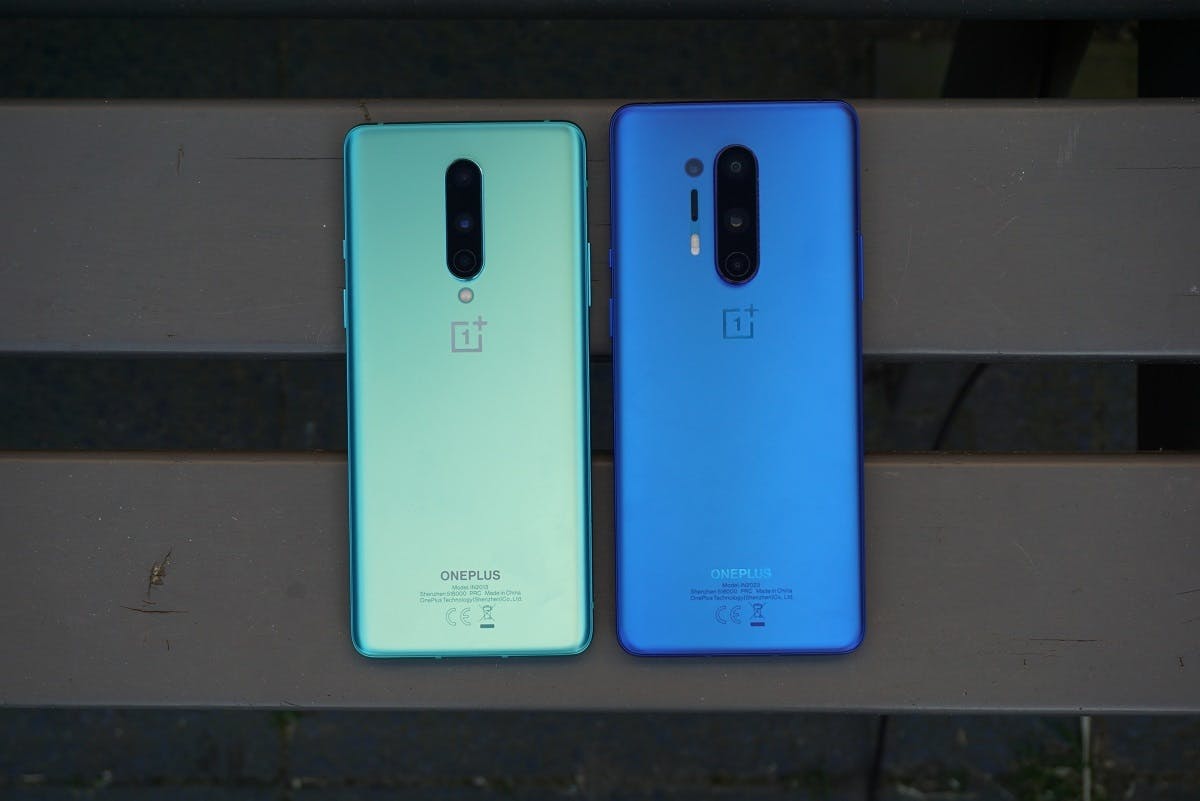 Hieronder zie je de OnePlus 8 (groen) en OnePlus 8 Pro naast elkaar.