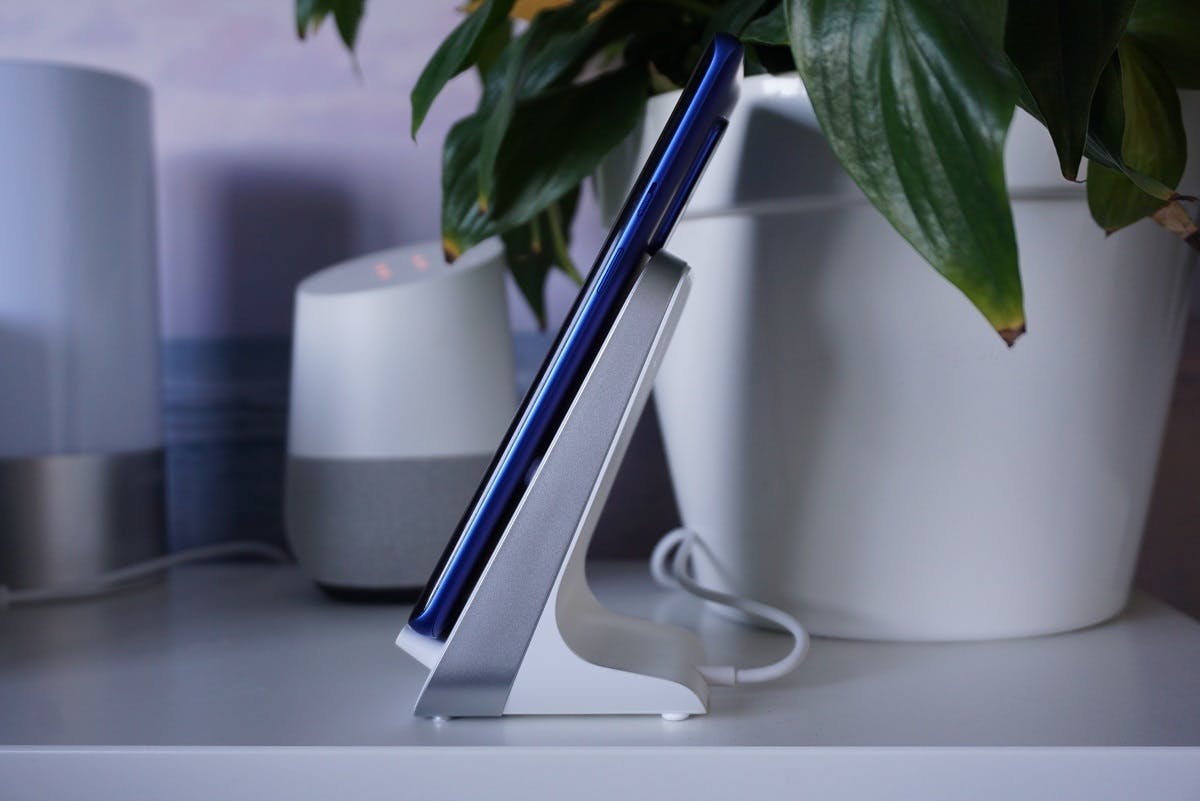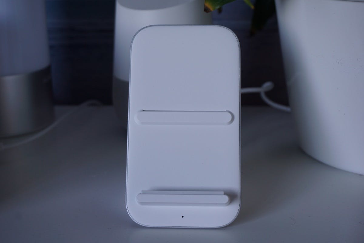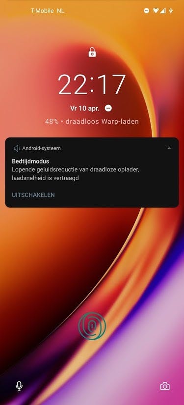 Die ingebouwde ventilator maakt een zacht zoemend geluid als de lader op volle kracht oplaadt. In de instellingen van de smartphone zit een nachtmodus die je naar eigen wens kan instellen. Opladen via de nachtmodus gaat langzamer, waardoor de ventilator uitblijft. Handig als je – zoals ik – de smartphone ’s avonds op de oplader legt en ‘m s’ ochtends pas weer nodig hebt. Het voornaamste minpunt van de draadloze oplader is dat de kabel en stekker aan het laadstation vastzitten. Als er een kabeldefect optreedt, moet je daarom de hele lader vervangen. Wil je geen zeventig euro uitgeven? Een willekeurige draadloze oplader met ondersteuning voor het EPP 10W-protocol laadt de 8 Pro op met 10W en dat is snel genoeg voor de nacht.