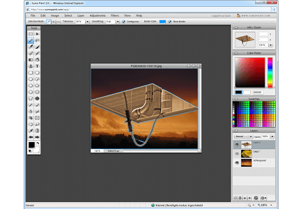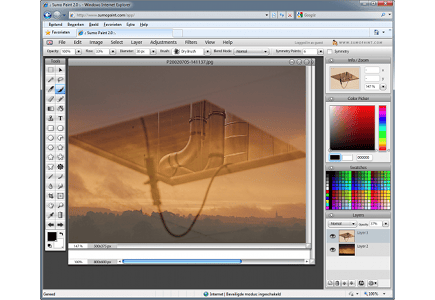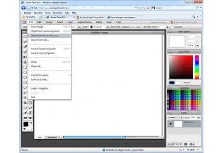 Voor wie de echte 'look-and-feel' van een fotobewerker zoekt, is Sumo Paint een aanrader. Op Sumo Paint klikt u op Open Sumo Paint, waarna de fotobewerker vanaf de website naar uw computer wordt geladen. U bewerkt uw foto's dus lokaal. Het duurt een korte tijd om het programma binnen te halen, maar daarna gaat zowel het laden als het bewerken van foto's op lokale topsnelheid. Via File / Open from My Computer laadt u een lokale foto in, hoewel u er ook voor kunt kiezen om via File / Open from URL een foto van internet op te halen. Dat kan een eigen foto zijn, maar ook een plaat van een willekeurige website.
