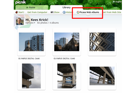 Vanuit Picnik kunt u een verbinding maken met Picasa Web Albums.