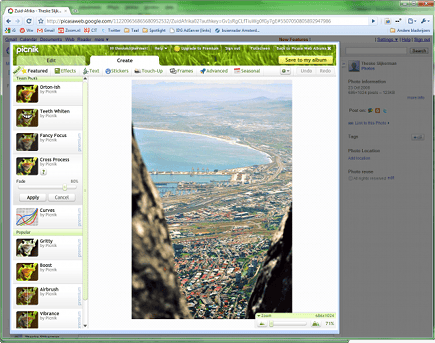 Met Picnik doet u basisbewerkingen of voegt u leuke effecten, teksten en kaders toe.