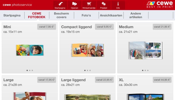 CEWE biedt fotoalbums in zes verschillende formaten aan.