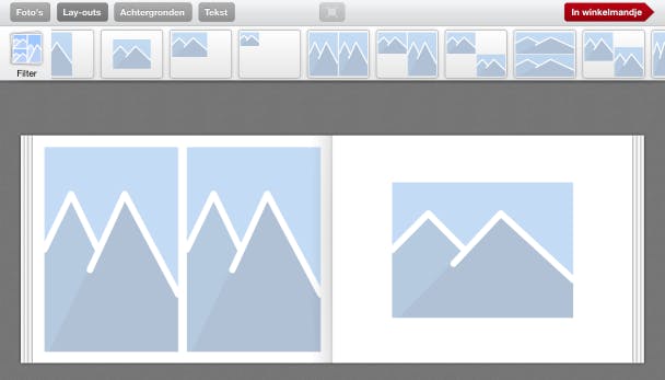 Bij het ontwerpen van het album zul je de hele tijd moeten switchen tussen Foto's en Lay-outs.