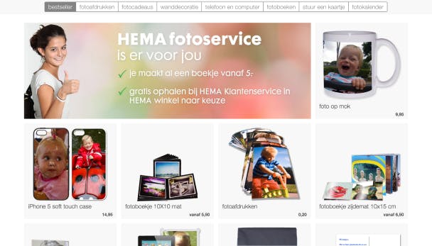Onze absolute favoriet naast CEWE is ongetwijfeld de app van Hema. De mogelijkheden lijken eindeloos. Je kunt op een intuïtieve manier losse afdrukken, albums of fotoCadeaus bestellen voor goede prijzen. In het assortiment fotoboeken zijn we erg enthousiast over het fotoboekje van 10 bij 10 cm. Voor amper 5,50 euro krijg je een compact vierkant album van 18 pagina's. Ideaal om je Instagram-foto's te vereeuwigen. Bovendien zitten er erg veel kaders, clip-arts en achtergronden in de app om je album op te leuken.
