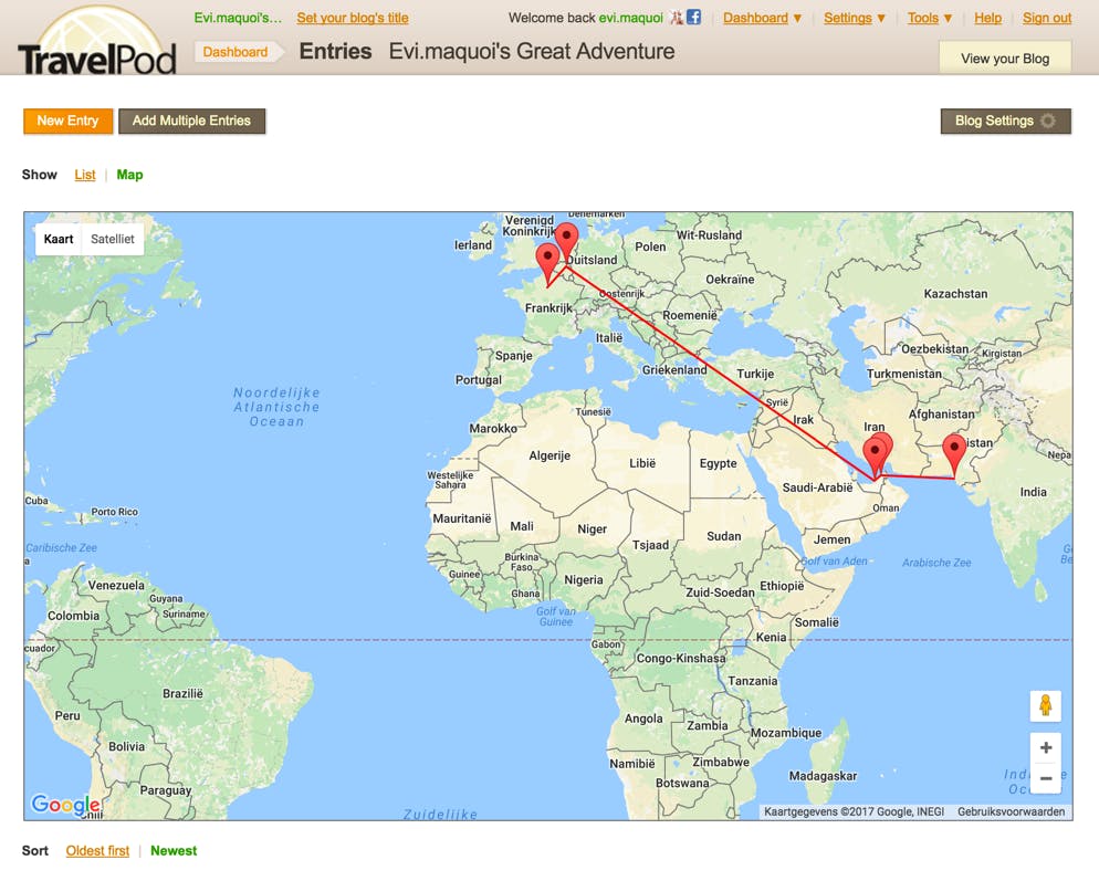 In tegenstelling tot de vorige beschreven diensten is TravelPod niet in het Nederlands beschikbaar. Toch is dit reisblog de moeite waard. Zo is het bijvoorbeeld mogelijk om op voorhand je reis uit te zetten en is het achteraf heel eenvoudig om content toe te voegen. Ook mobiel bloggen is bij dezen dienst geen probleem, het is zelfs mogelijk zonder tussenkomt van een app. Het enige wat je hoeft te doen, is een verslag of foto per e-mail versturen aan je gepersonaliseerde e-mailadres. Zit je krap bij kas? Dan is er zelfs een feature waarmee je kunt vragen om reisdonaties via PayPal. Een minpuntje is dan weer dat je het met de standaardvormgeving van TravelPod moet doen. Verder kun je wel mailinglijsten creëren, statistieken opvragen en een fotoalbum ontwerpen.