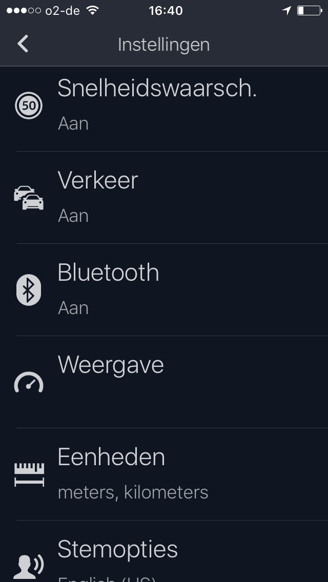 Wil je tijdens het rijden iets veranderen of de eindlocatie wijzigen, tik dan op het donkerblauwe veld onderin. Kies voor Instellingen en kies bijvoorbeeld de taal van de navigator door op Stemopties te tikken. Als Nederlands niet standaard is geïnstalleerd, tik dan onderin op Meer downloaden en kies voor Nederlands (Vrouw) of Nederlands (Man). Deze opties hebben echter geen gesproken straatnamen, dit heeft de Engelse optie wel.