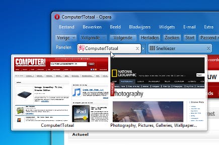 Wanneer u regelmatig veel tabs open hebt staan, zal de nieuwe functie tab stacking u aanspreken. Door tabs over elkaar heen te slepen combineert u deze tot één enkele tab. Als u uw muisaanwijzer op zo’n gecombineerde tab plaatst, krijgt u een preview van de zich eronder bevindende pagina’s te zien. Via deze preview kunt u de gewenste pagina kiezen, maar u kunt gestapelde tabs ook uit- en invouwen middels het pijltje dat naast een gecombineerde tab verschijnt.