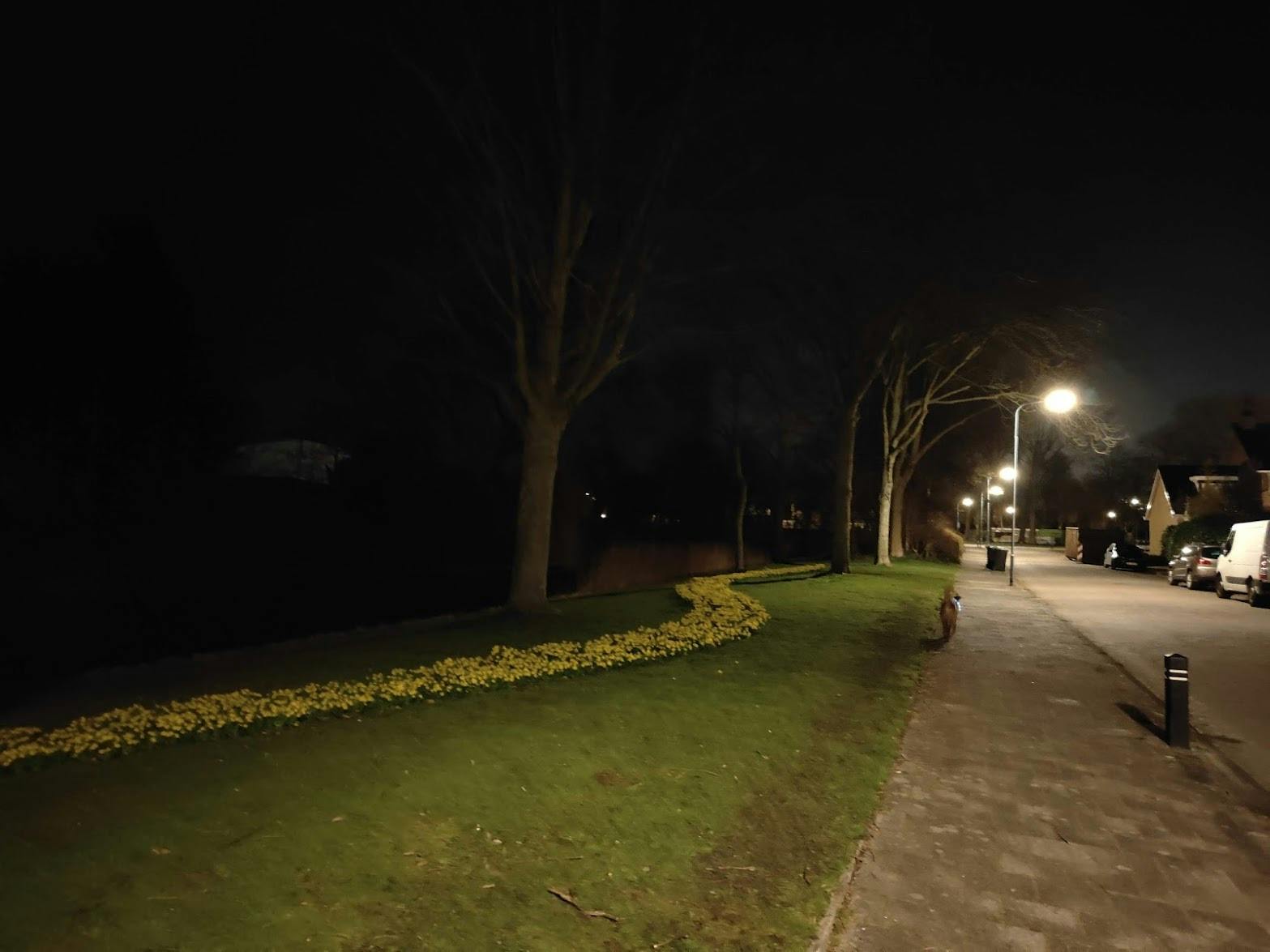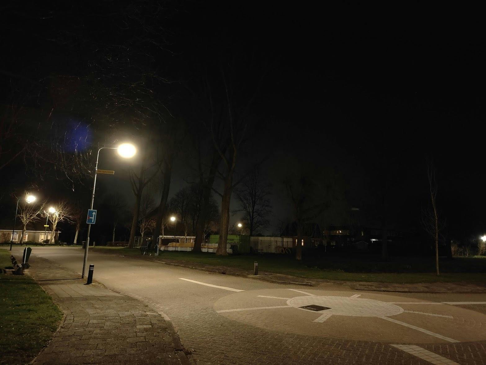 Hieronder zie je hoe de hoofdcamera in het donker presteert. Links de automatische stand, rechts de nachtmodus. Die heeft een seconde of vier nodig om een foto te maken en levert duidelijkere beelden af met meer detail en kleuren die meer in lijn liggen met de werkelijkheid. In vergelijking met de Samsung Galaxy S21 en OnePlus 9 Pro maakt de Oppo Find X3 Pro meer natuurlijke nachtfoto's, die donkerder overkomen en geen overdreven heldere lucht tonen. Dat vind ik fijn, al zijn de plaatjes van de concurrentie wel wat duidelijker en sprekender.