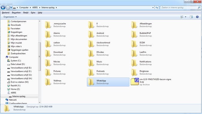 7 - Kopieer het mapje Whatsapp om je gespreksgeschiedenis te behouden.