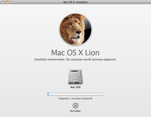 De installatie van Lion gaat eenvoudig. Met een paar klikken wordt het besturingssysteem geïnstalleerd.