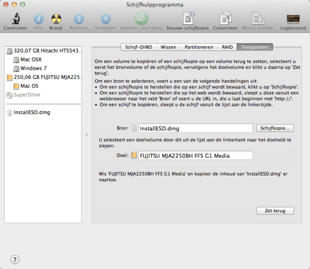 Kunt u Lion niet vanuit de App Store installeren, bijvoorbeeld omdat er een nieuwe schijf in uw computer zit, dan kan via een trucje Lion vanaf een usb-stick worden geïnstalleerd. U hebt hier wel een andere Apple-computer voor nodig waarop Lion al is gedownload (maar niet geïnstalleerd), plus een usb-stick van minimaal 8 GB. Open Finder / Programma's, klik met de rechtermuisknop op Mac OS X-installatie en kies Toon pakketinhoud. Ga naar de map Contents / SharedSupport en kopieer het bestand InstallESD.dmg naar uw bureaublad. Sluit de usb-stick aan en open Finder. Ga naar Programma's / Hulpprogramma's / Schijfhulpprogramma en klik op de usb-stick. Open het tabblad Terugzetten en klik op Schijfkopie. Kies het bestand InstallESD.dmg en klik op Open. Sleep de usb-stick van het linkermenu naar Doel en klik op Zet terug. Sluit de usb-stick nu aan op de gewenste computer en start op met de Alt-toets ingedrukt. Kies de usb-stick om de installatie te starten.