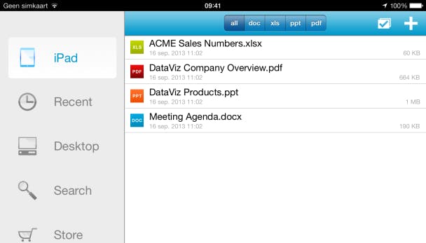 Het alternatief voor cloudopslag dat ontwikkelaar DataViz biedt, is gratis desktop-software waarmee we binnen ons eigen wifi-netwerk mappen op de pc kunnen synchroniseren met de iPad. Eenmaal bewerkte bestanden moet je dus ook weer terug synchroniseren voor je er achter je laptop of pc mee verder kan. Je moet dus vooruit denken vóór je de deur uit gaat, en dat verkleint het gemak van de app. Het pakket kan gelukkig wel bestanden openen die je per mail ontvangt.