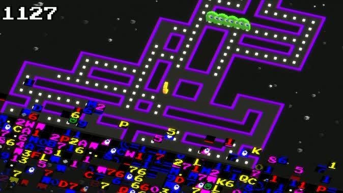 Terug naar het spel. Als je Pac-Man 256 voor het eerst speelt lijkt alles op een standaard Pac-Man game. Je ziet onze gele held, een aantal spoken, de power pills die Pac-Man op moet eten en natuurlijk het doolhof waar Pac-Man doorheen moet rennen. Toch is niet alles hetzelfde. Het is namelijk niet meer het idee dat je alle pillen opeet, maar dat je zo snel mogelijk omhoog het scherm in rent. Natuurlijk moet je daarbij wel zoveel mogelijk punten scoren en de spoken ontwijken, maar het echte gevaar in deze game komt van de Pac-Man 256 bug. Als je namelijk niet snel genoeg omhoog gaat, zie je dat onderaan het scherm het doolhof langzaam maar zeker verandert in onbegrijpelijke regels code. De bug eet als het ware het spel op, en als je niet oppast gebeurt dit ook met Pac-Man. En dan is het toch echt game over.