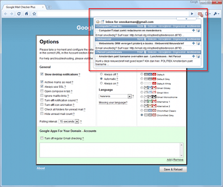 Middels Google Mail Checker Plus krijgt u snel toegang tot uw Gmail-box.