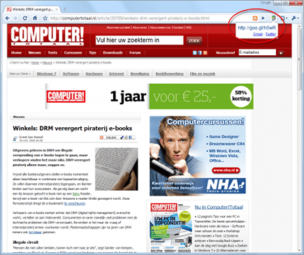 Met twee muisklikken kort u een url in en deelt u hem via uw sociale netwerk of via e-mail.